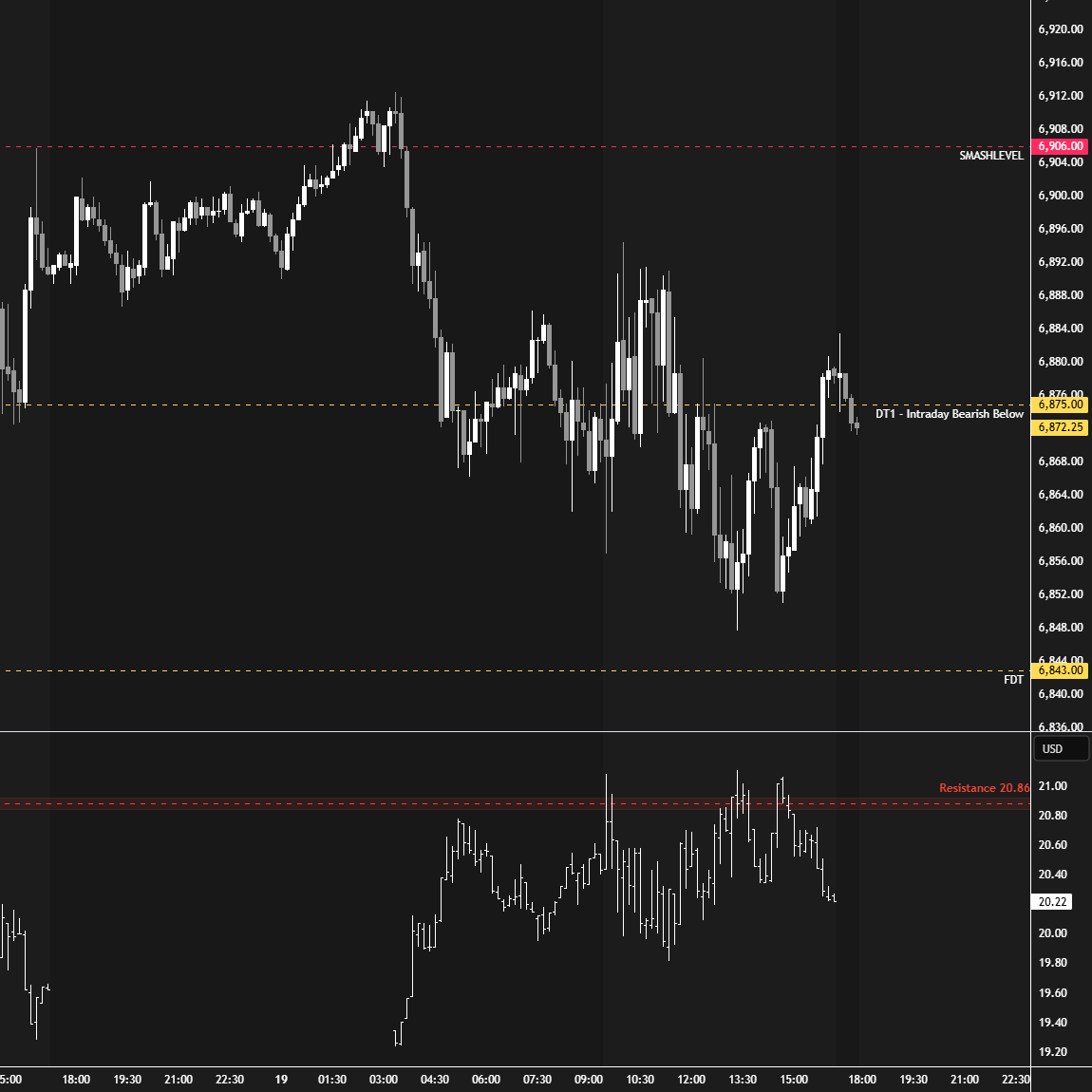 In terms of levels, the Smashlevel is 6860—the M-period low. Holding above 6860 would target 6890 (UT1). Acceptance above 6890 would signal strength, targeting 6906 (UT2), with a final upside target at 6927 (FUT) under sustained buying pressure.