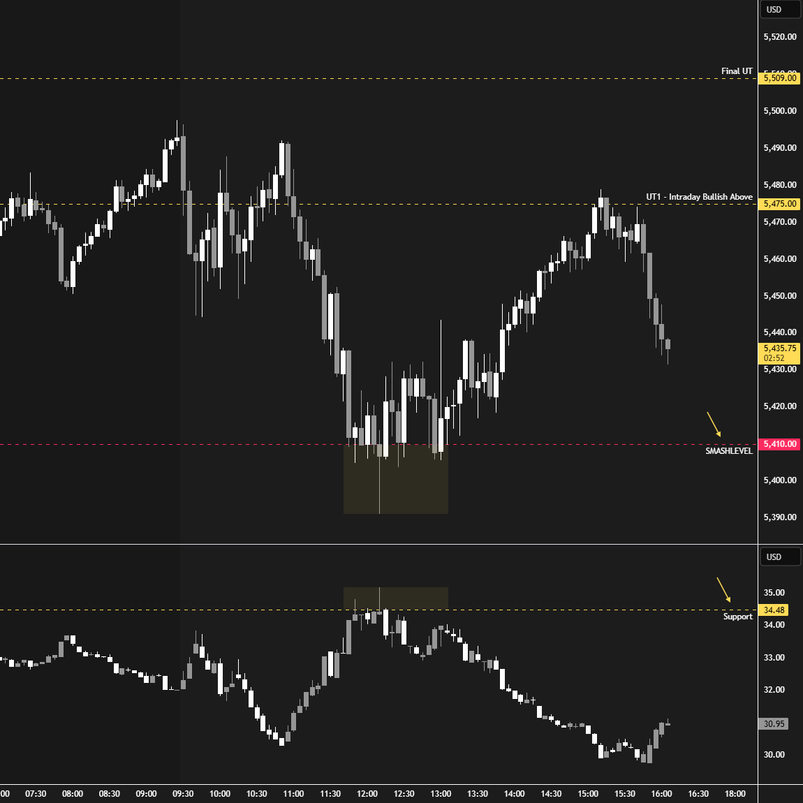 Overall, it's important to exercise caution when trading outside of the highlighted yellow levels. A non-cooperative VIX may suggest possible reversals i.e trade setups.