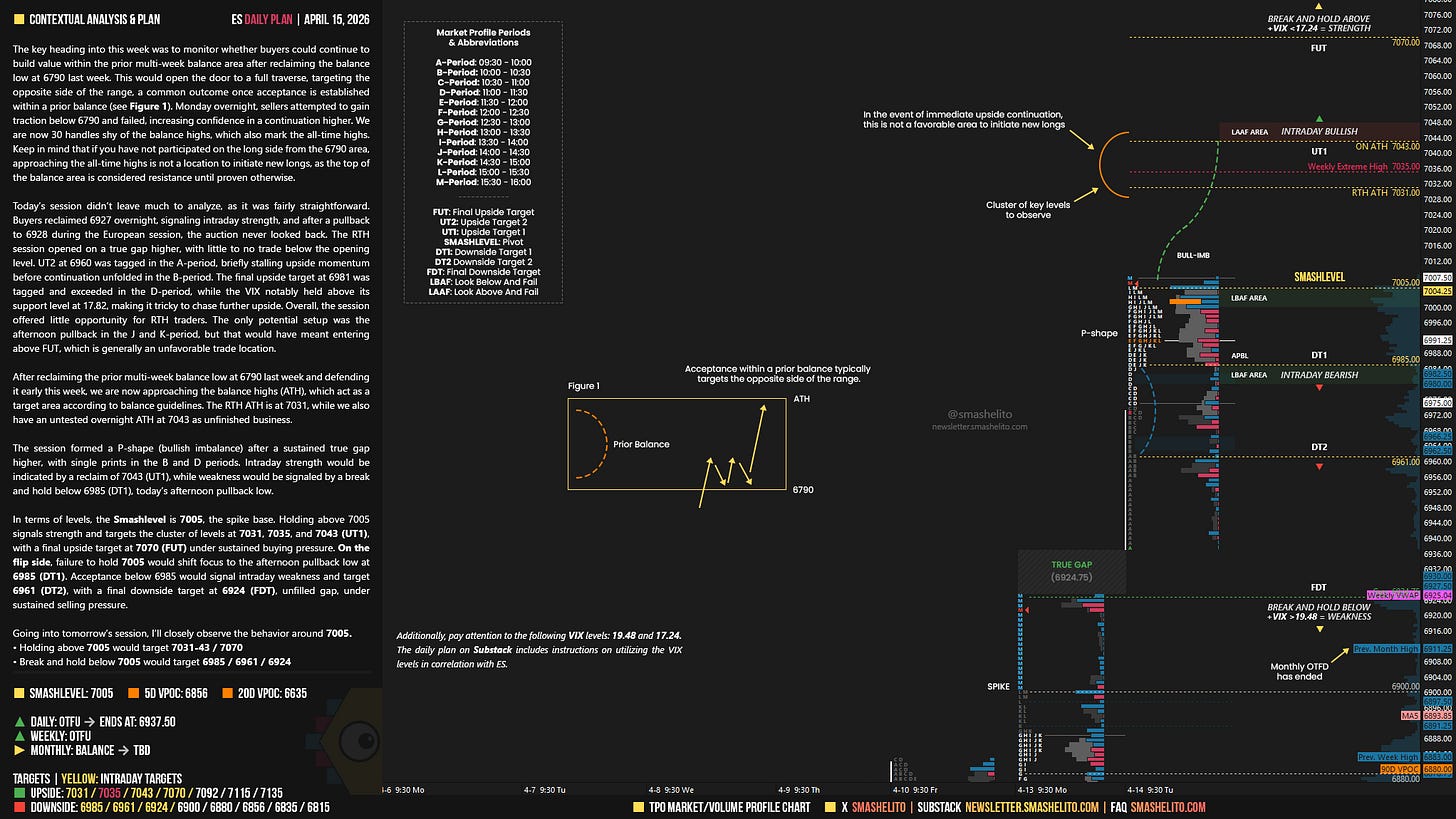 Be sure to review the Weekly Plan for a broader perspective, key levels, and market expectations for the week ahead.