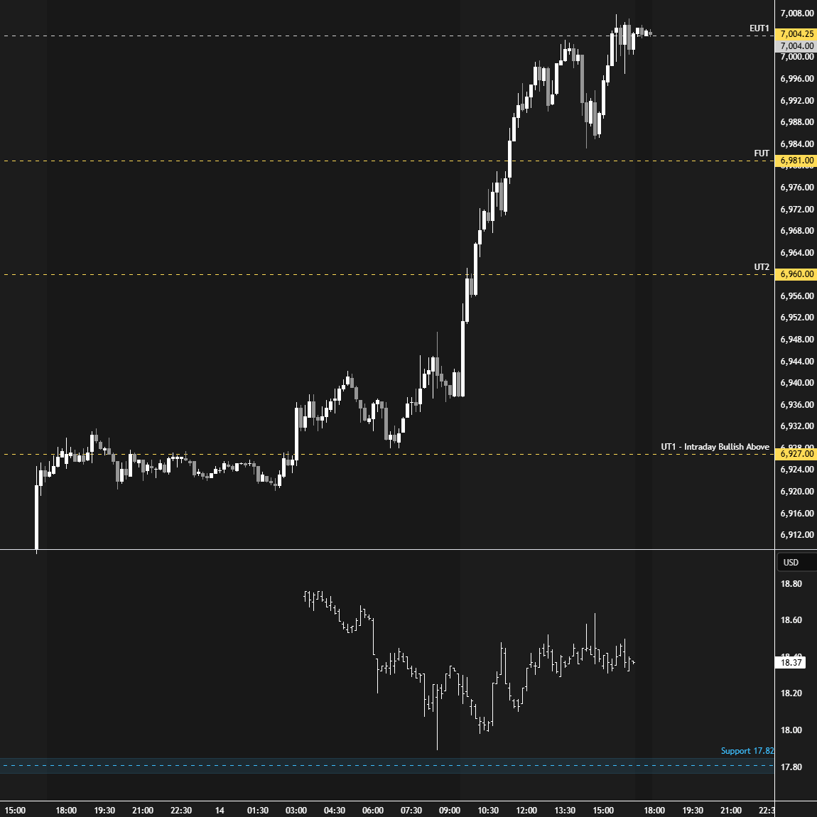 In terms of levels, the Smashlevel is 7005, the spike base. Holding above 7005 signals strength and targets the cluster of levels at 7031, 7035, and 7043 (UT1), with a final upside target at 7070 (FUT) under sustained buying pressure.