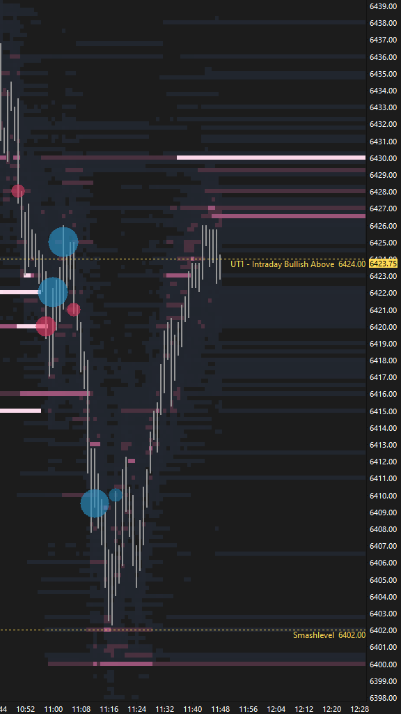In terms of levels, the Smashlevel is at 6366—the M-period spike base. Holding above 6366 would target the resistance area between 6398 and 6406 (UT1). with a final upside target (FUT) at 6428 under sustained buying pressure.