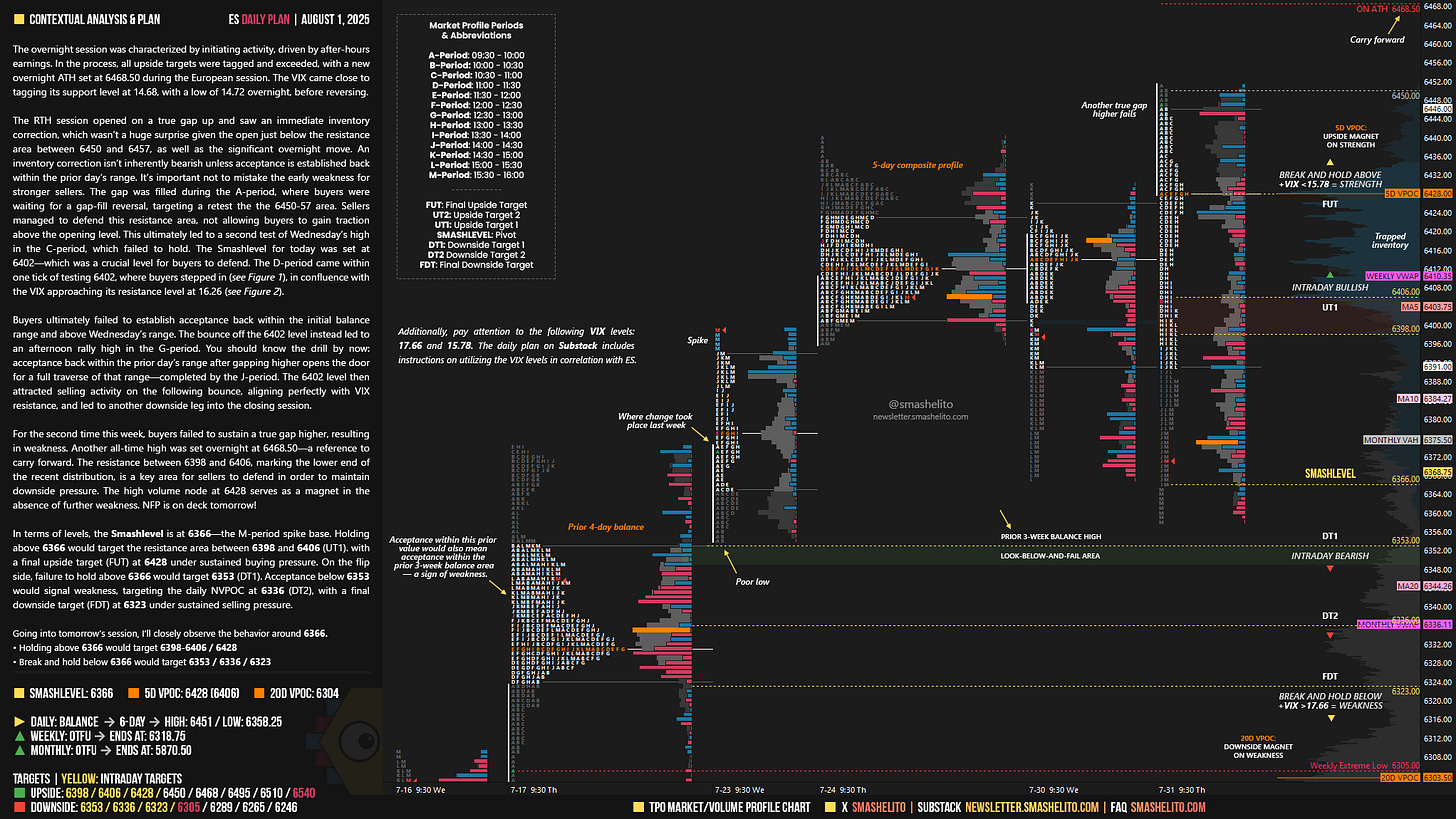 Be sure to review the ES Weekly Plan | July 28 - August 1, 2025 for a broader perspective, key levels, and market expectations for the week ahead.
