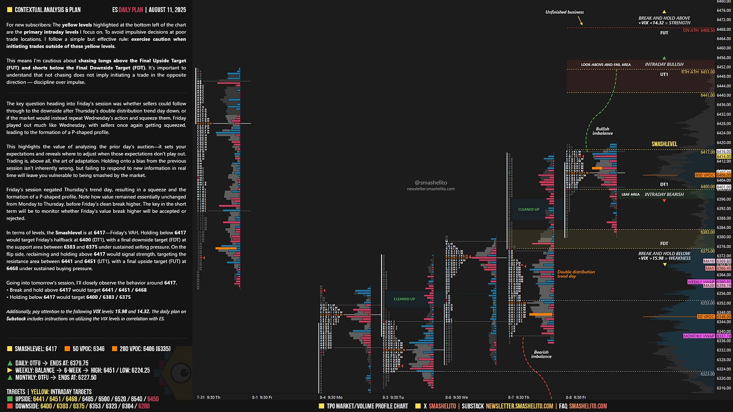 Be sure to review the ES Weekly Plan | August 11-15, 2025 for a broader perspective, key levels, and market expectations for the week ahead.