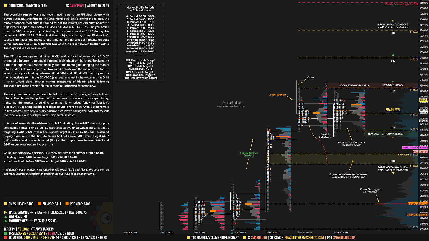 Be sure to review the ES Weekly Plan | August 11-15, 2025 for a broader perspective, key levels, and market expectations for the week ahead.