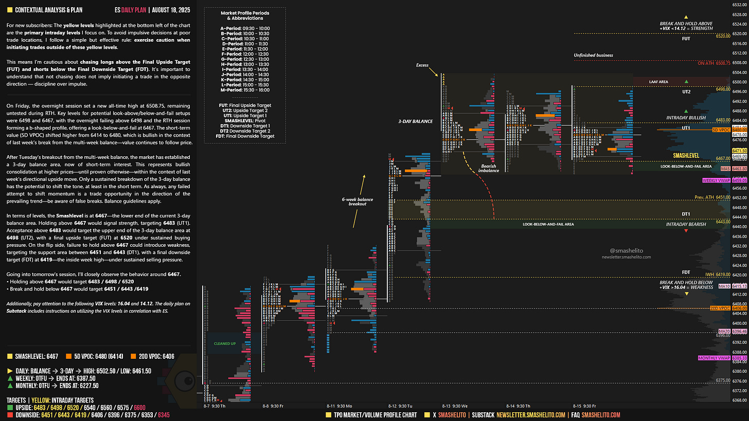 Be sure to review the ES Weekly Plan | August 18-22, 2025 for a broader perspective, key levels, and market expectations for the week ahead.
