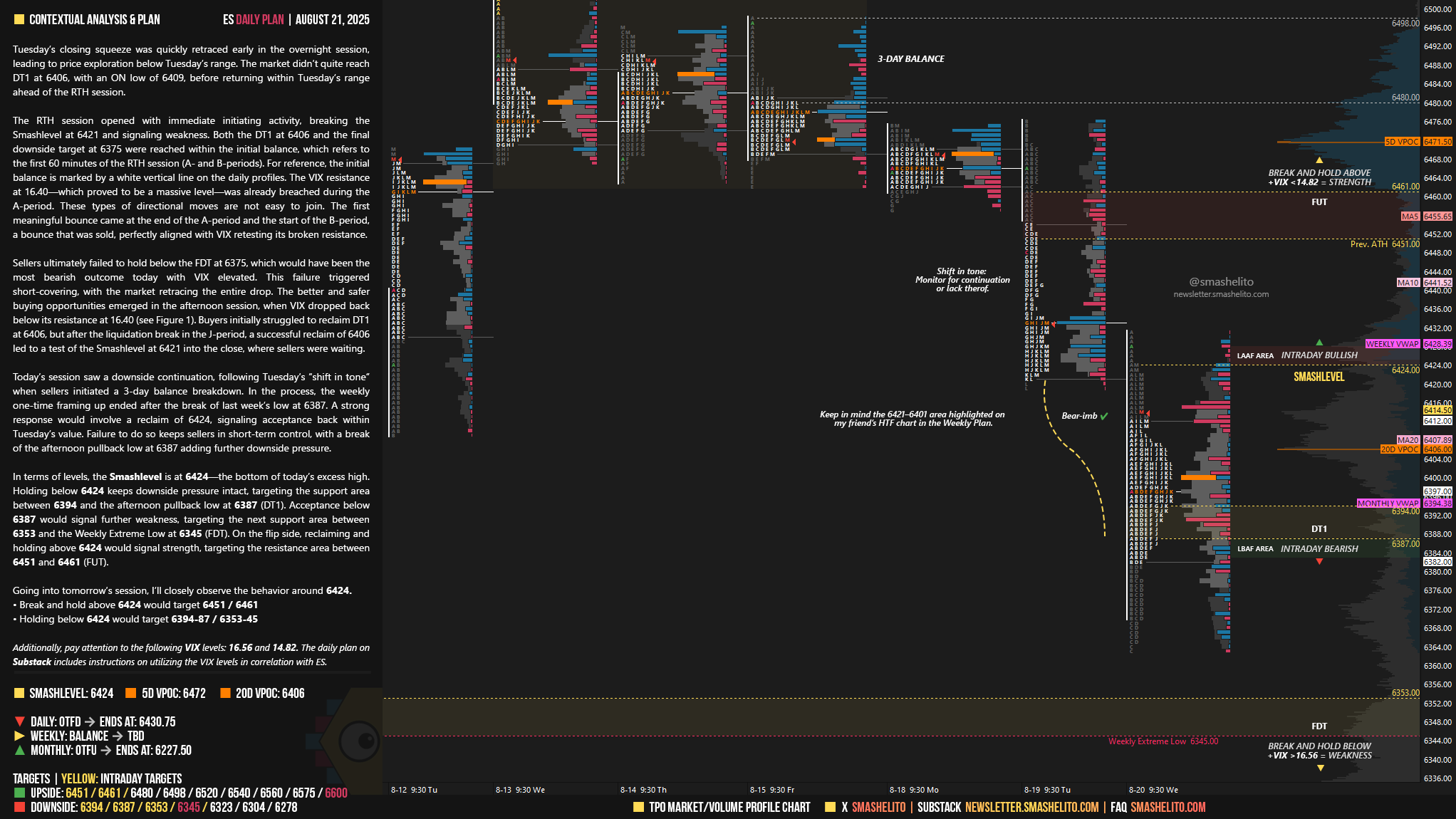 Be sure to review the ES Weekly Plan | August 18-22, 2025 for a broader perspective, key levels, and market expectations for the week ahead.