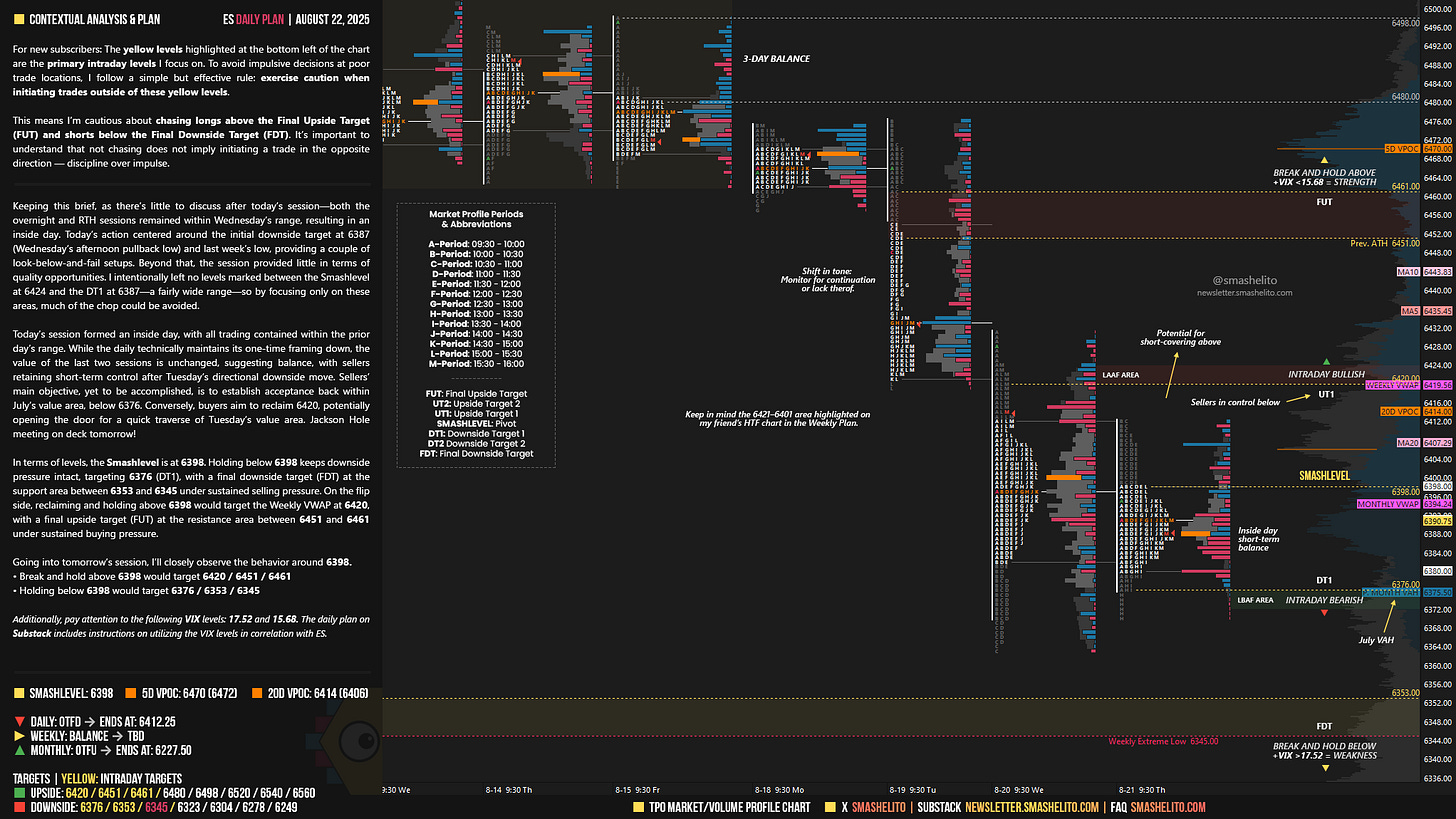 Be sure to review the ES Weekly Plan | August 18-22, 2025 for a broader perspective, key levels, and market expectations for the week ahead.
