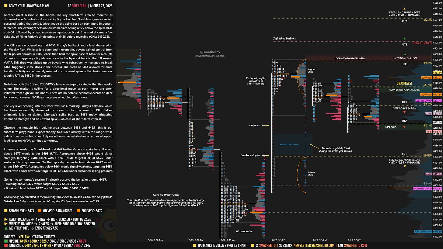 Be sure to review the ES Weekly Plan | August 25-29, 2025 for a broader perspective, key levels, and market expectations for the week ahead.
