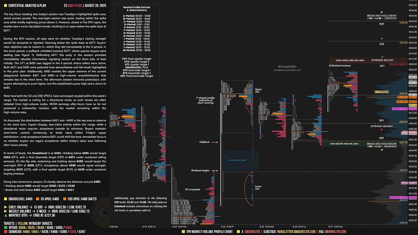 Be sure to review the ES Weekly Plan | August 25-29, 2025 for a broader perspective, key levels, and market expectations for the week ahead.