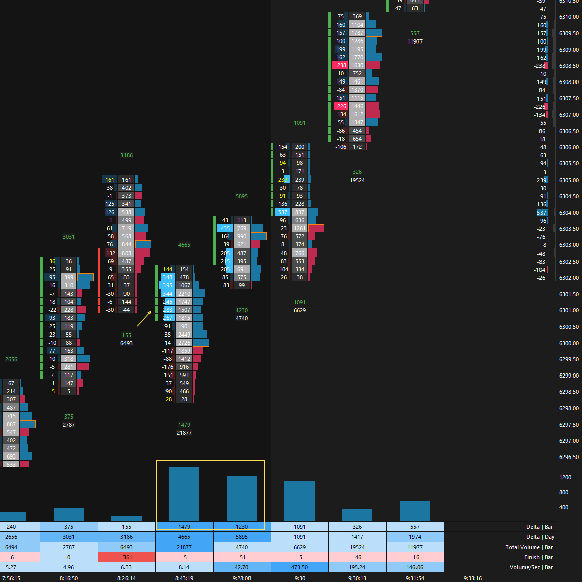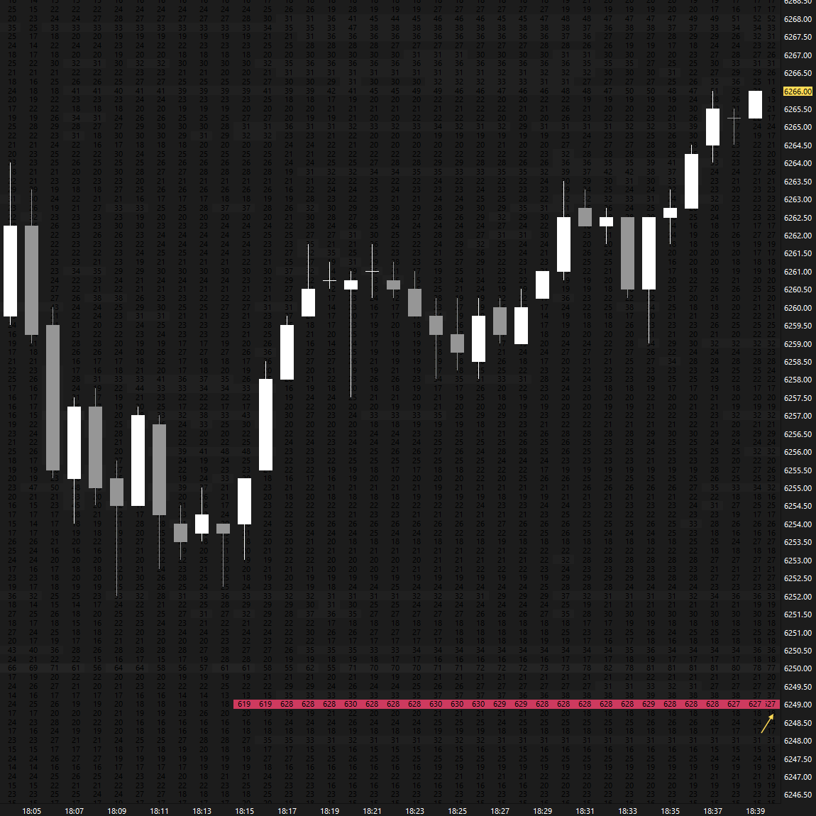The key focus today was whether the market would see an immediate downside continuation following Friday’s notable true gap down, or if a counter-auction would develop first. The overnight session found immediate support just above the Smashlevel at 6249, marking the low of today’s full session. Notably, resting liquidity appeared right at 6249 with 600+ contracts (see Figure 1). While this doesn’t necessarily have to mean anything, it does at least suggest that the level held some importance beyond just our own view.