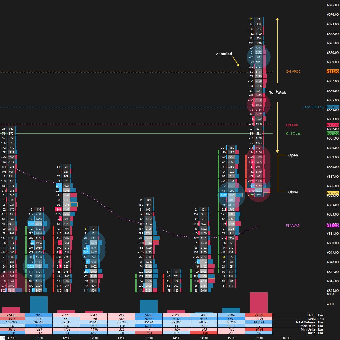 The overnight session was marked by early weakness, with the auction coming a few ticks shy of filling the roll gap at 6830.75—also our final intraday downside target—where buyers stepped in. The key question was whether the RTH session would need to complete that roll-gap fill, or if the overnight attempt was sufficient. The FDT is an unfavorable location to chase shorts, as regular readers of this newsletter are aware. The rotation off 6830 resulted in a test of the Smashlevel at 6890, with an overnight high at 6892, which ultimately marked the HOD for the full session.