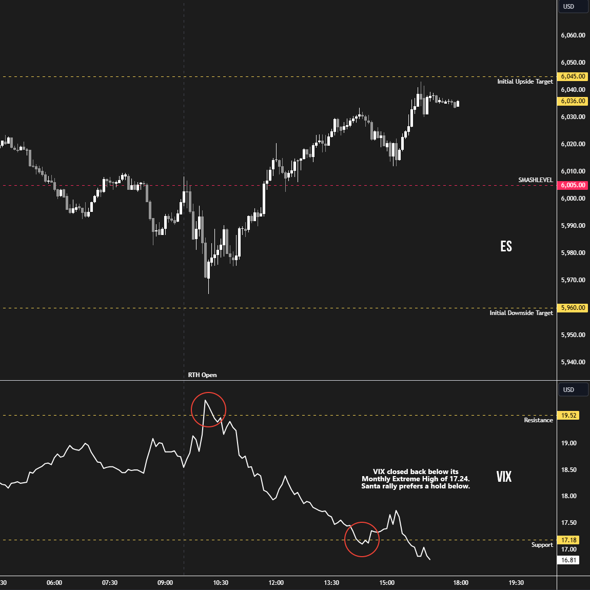 Break and hold below 5980 with VIX above 17.84 would confirm weakness.
