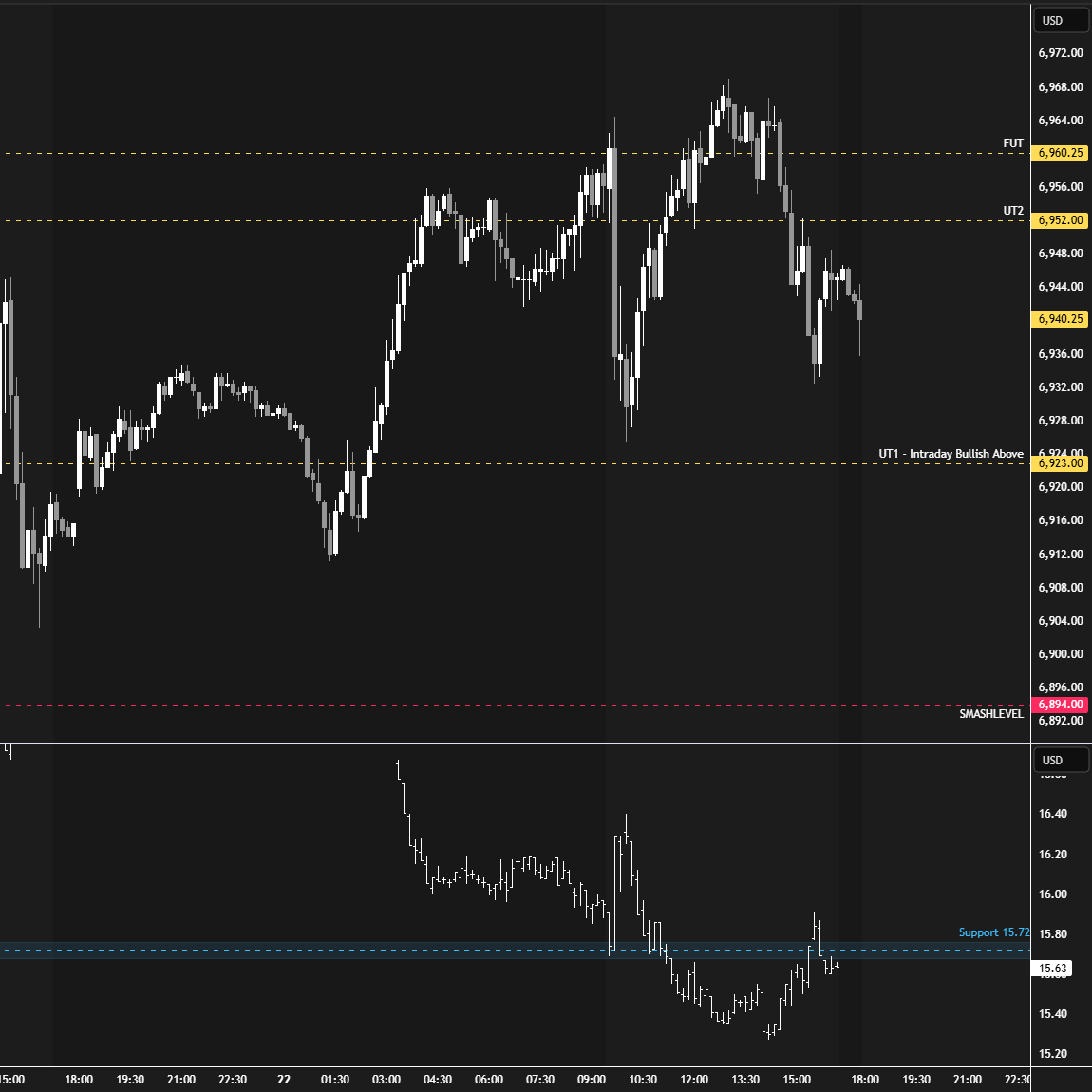 The yellow levels highlighted at the bottom left of the chart are the primary intraday levels I focus on. To avoid impulsive decisions at poor trade locations, I follow a simple but effective rule: exercise caution when initiating trades outside of these yellow levels.