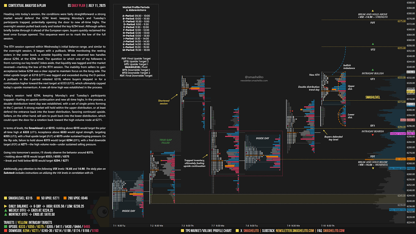 Be sure to review the ES Weekly Plan | July 7-11, 2025 for a broader perspective, key levels, and market expectations for the week ahead.