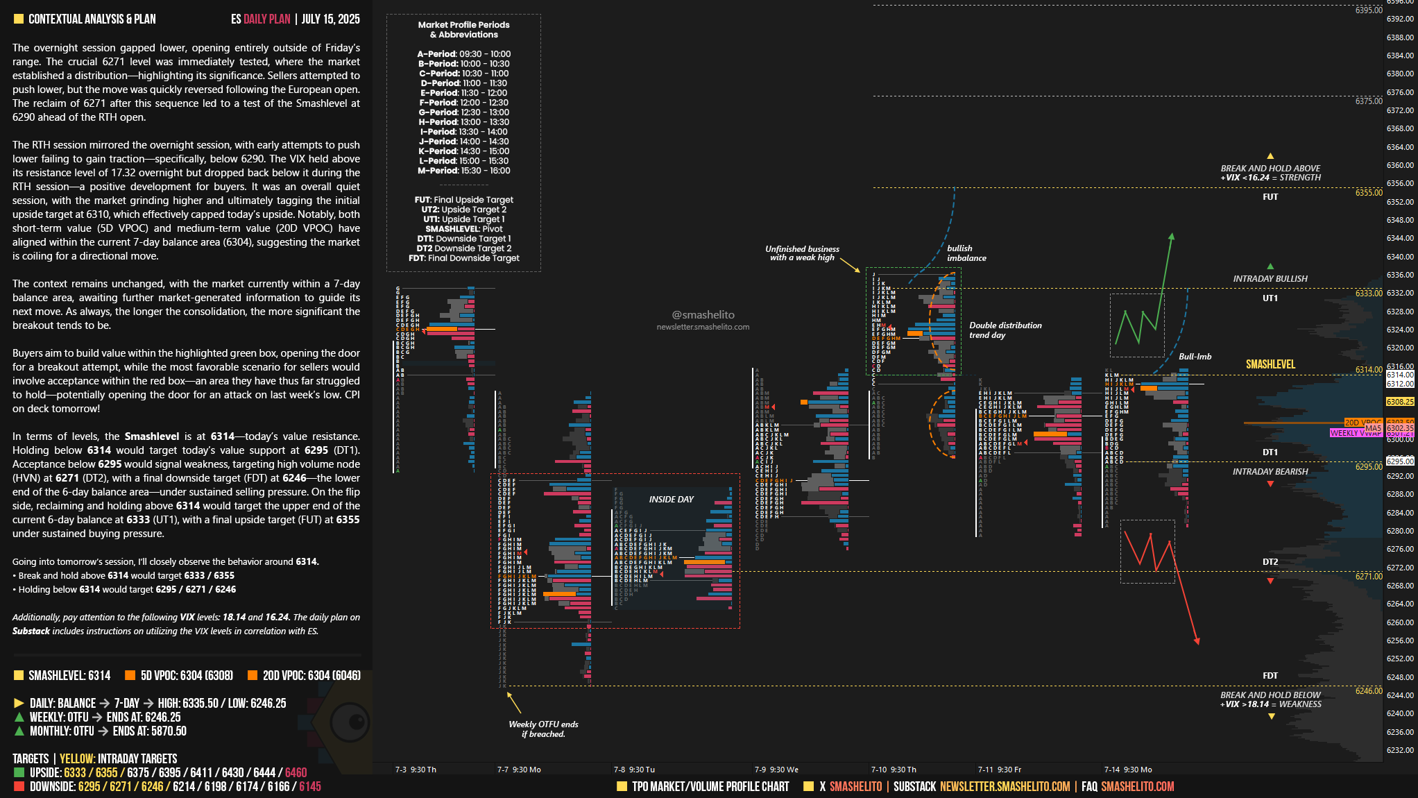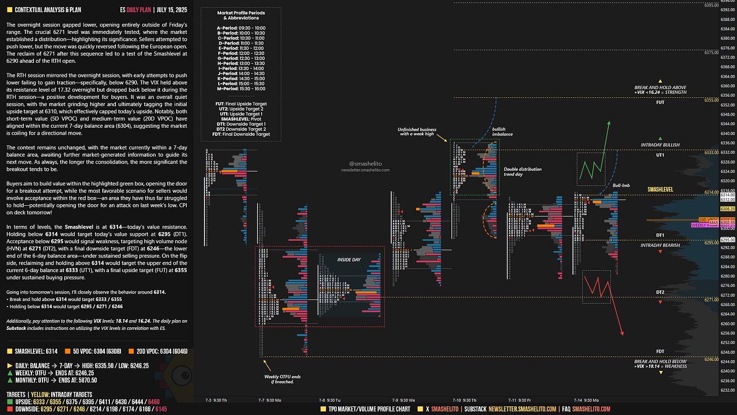 Be sure to review the ES Weekly Plan | July 14-18, 2025 for a broader perspective, key levels, and market expectations for the week ahead.