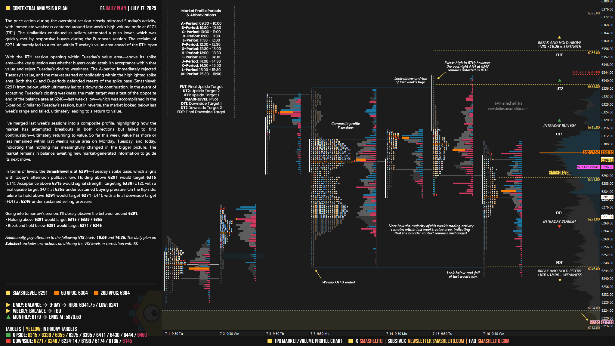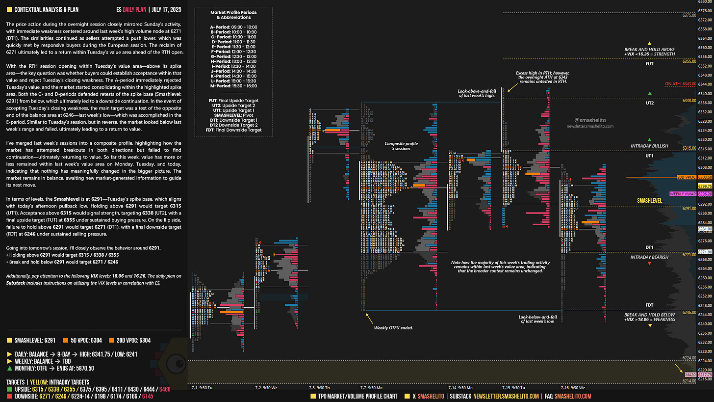 Be sure to review the ES Weekly Plan | July 14-18, 2025 for a broader perspective, key levels, and market expectations for the week ahead.