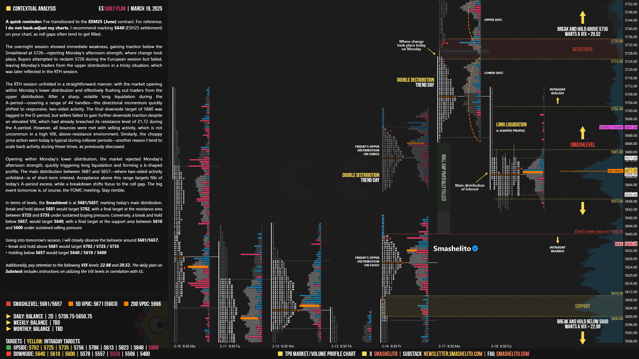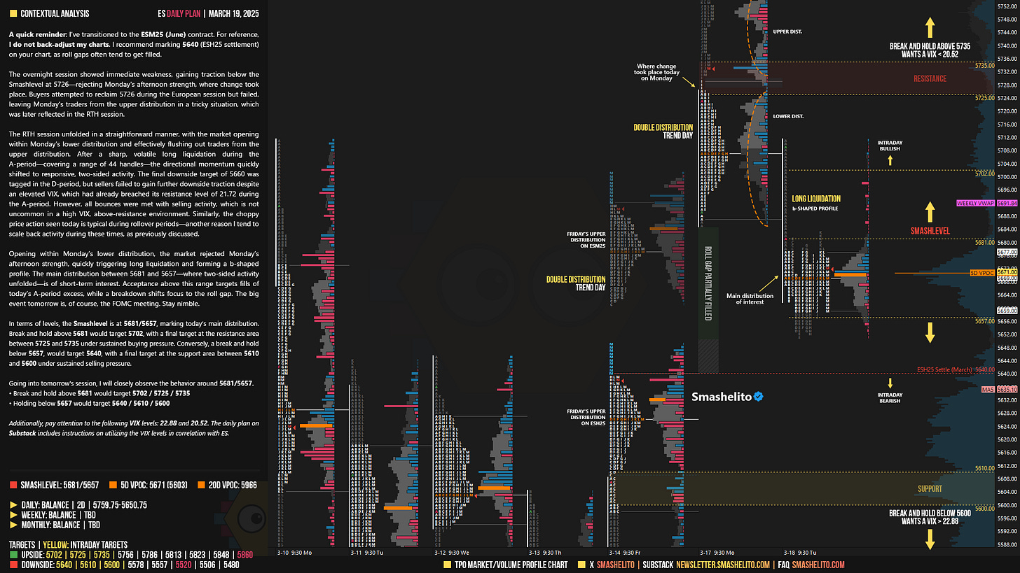 A quick reminder: I’ve transitioned to the ESM25 (June) contract. For reference, I do not back-adjust my charts. I recommend marking 5640 (ESH25 settlement) on your chart, as roll gaps often tend to get filled.