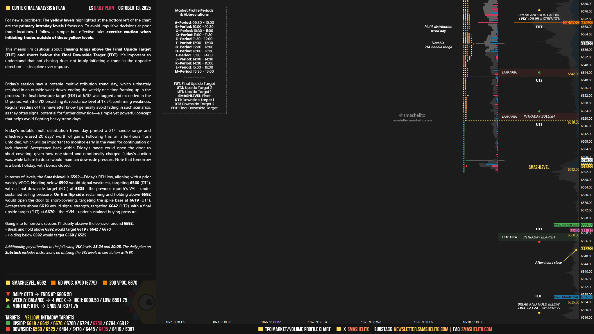 Be sure to review the ES Weekly Plan | October 13-17, 2025 for a broader perspective, key levels, and market expectations for the week ahead.