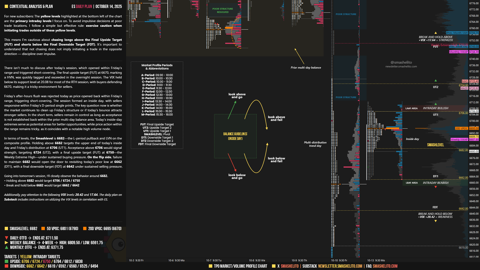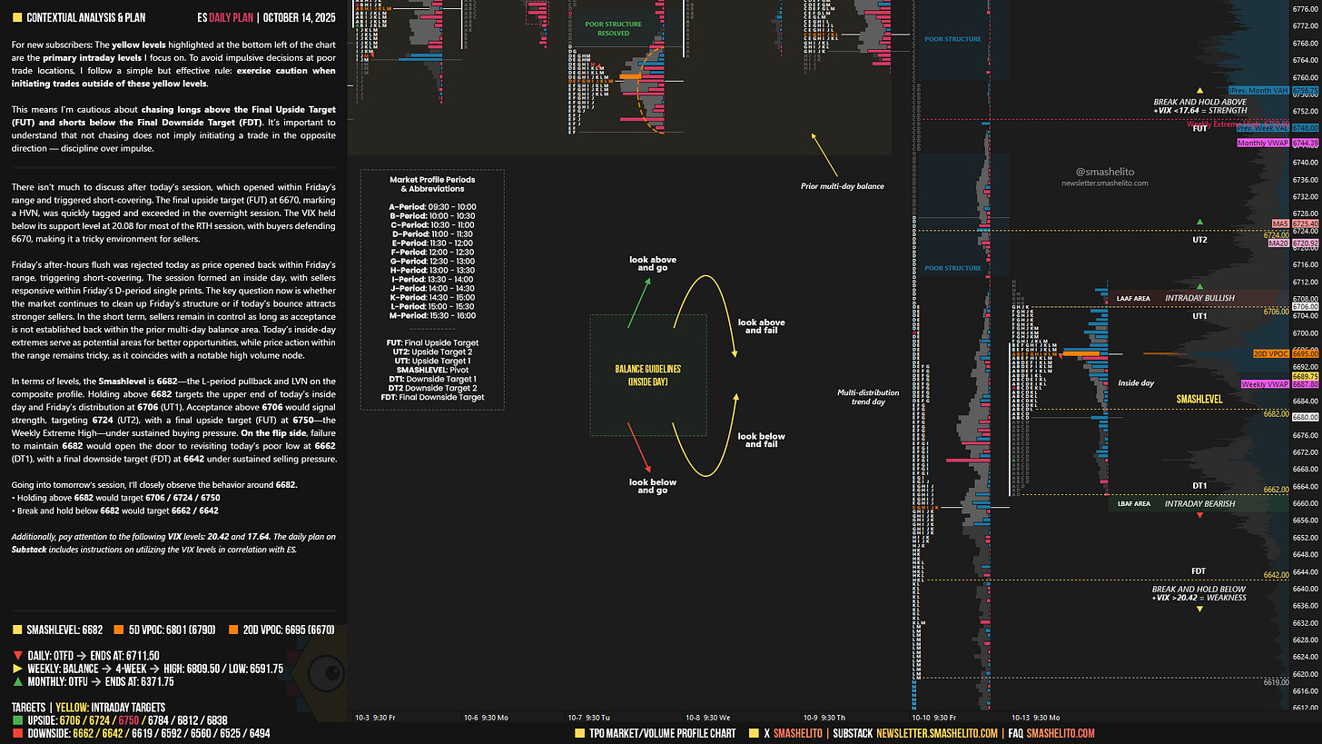 Be sure to review the ES Weekly Plan | October 13-17, 2025 for a broader perspective, key levels, and market expectations for the week ahead.