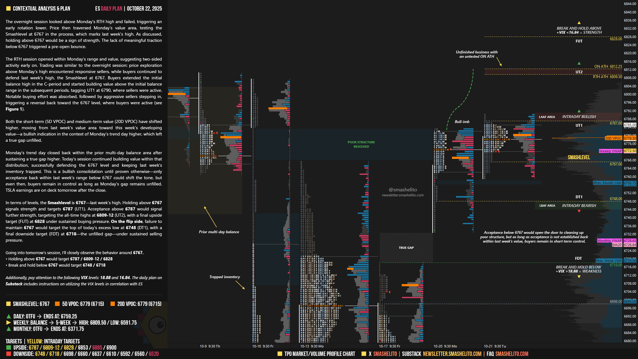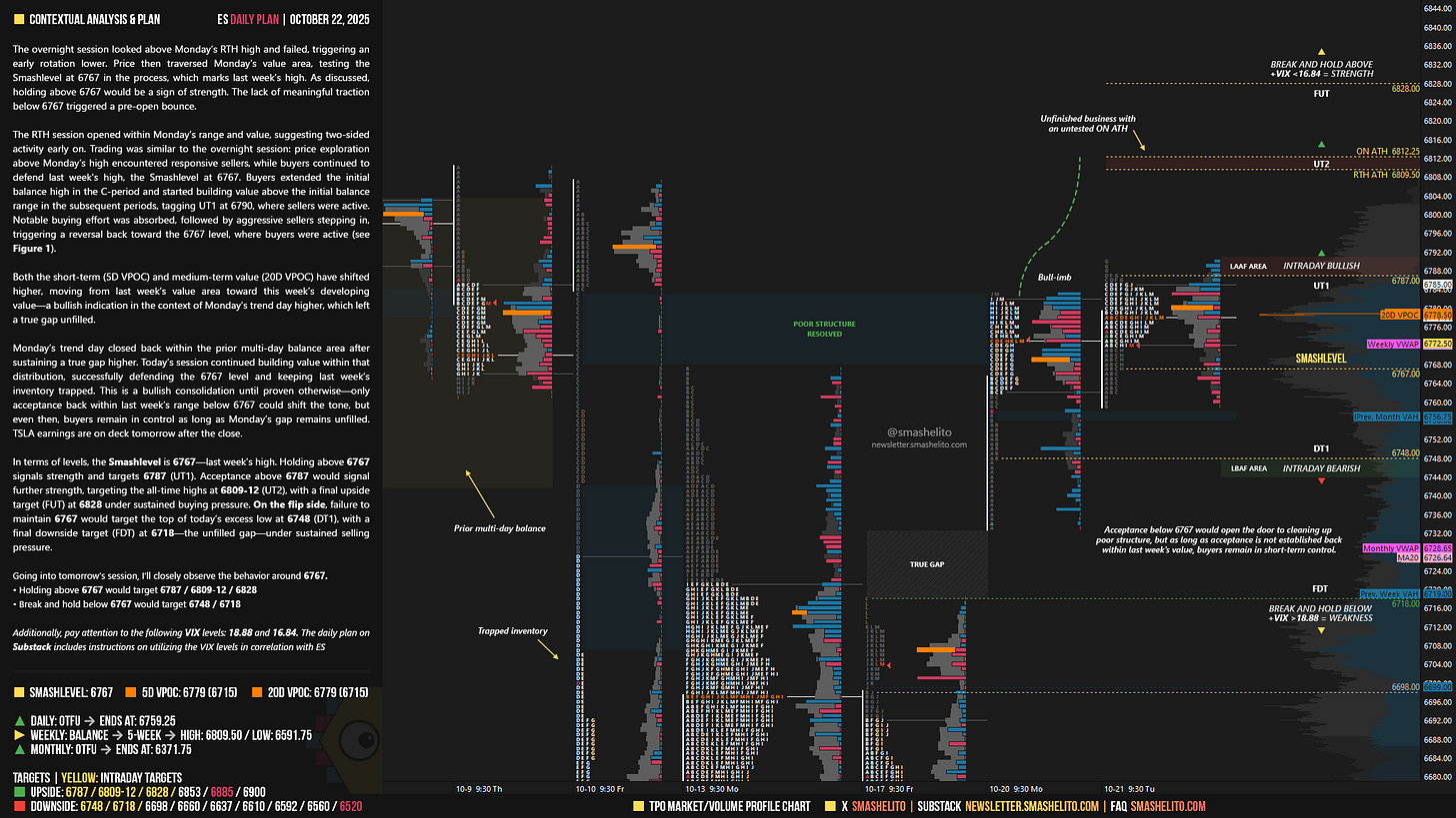 Be sure to review the ES Weekly Plan | October 20-24, 2025 for a broader perspective, key levels, and market expectations for the week ahead.