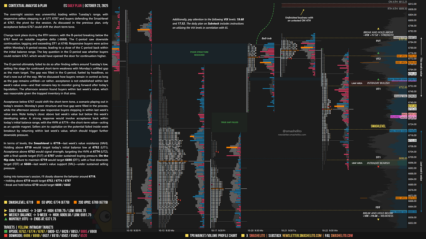 Be sure to review the ES Weekly Plan | October 20-24, 2025 for a broader perspective, key levels, and market expectations for the week ahead.
