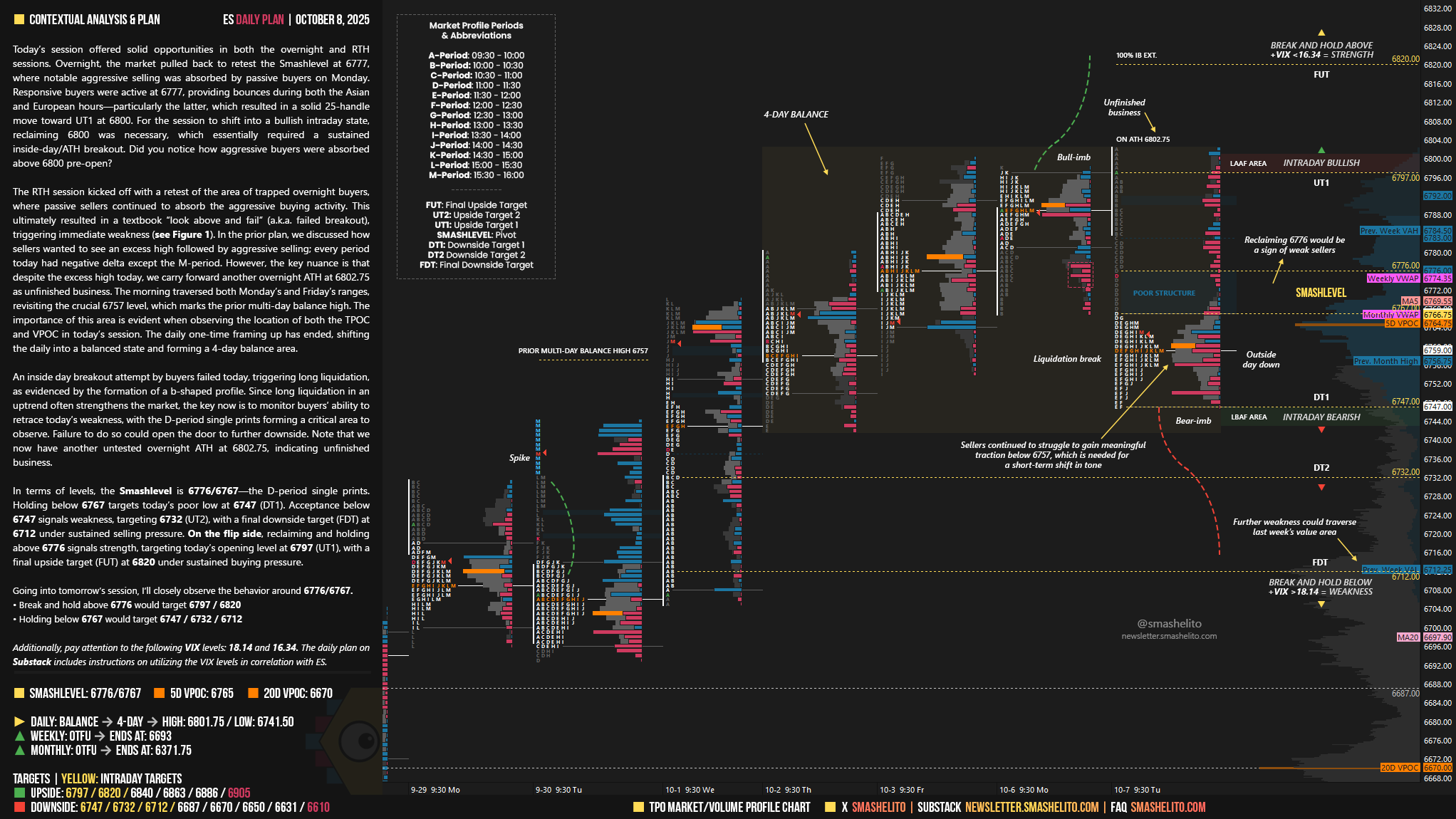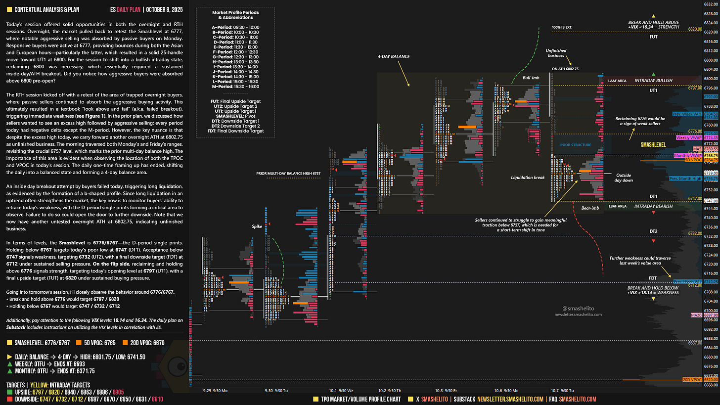 Be sure to review the ES Weekly Plan | October 6-10, 2025 for a broader perspective, key levels, and market expectations for the week ahead.