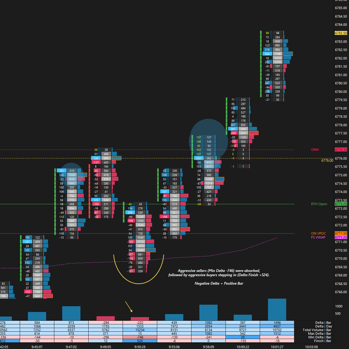 As discussed in the previous plan, liquidation breaks in an uptrend often strengthen the market. Their primary function is to shake out weak-handed longs (from the poor/weak triple top), clean up market structure, and attract stronger buyers at more favorable prices—often while trapping late sellers. Since there are no absolutes in trading, we focused on monitoring Tuesday’s D-period single prints for clues about what the market wanted next. If sellers defended this area, we could expect more liquidation; if they failed to do so, a complete retracement was likely. This essentially reflects my approach in every session: I mark levels of interest in my pre-open analysis, then monitor order flow activity around these levels to gauge participant behavior.