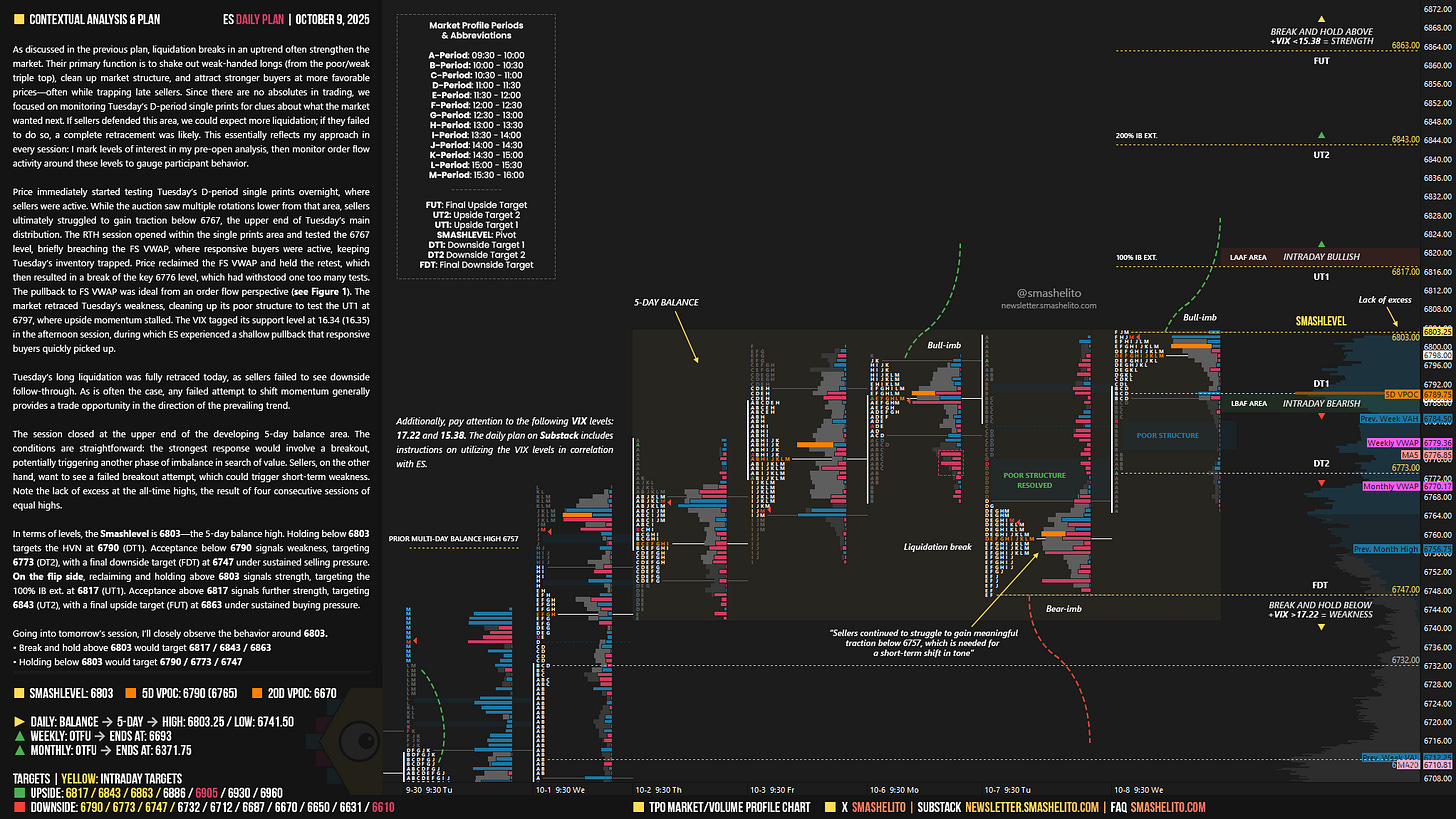 Be sure to review the ES Weekly Plan | October 6-10, 2025 for a broader perspective, key levels, and market expectations for the week ahead.