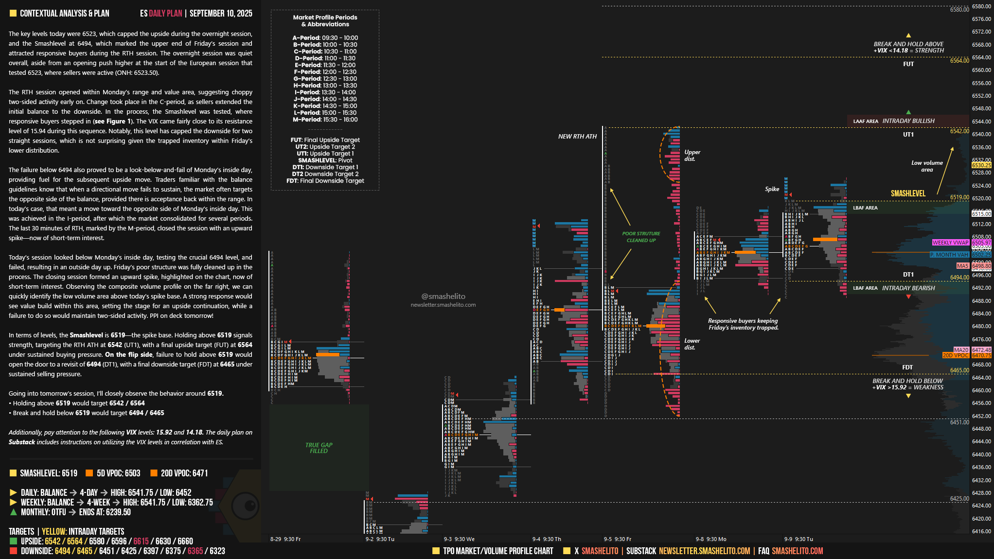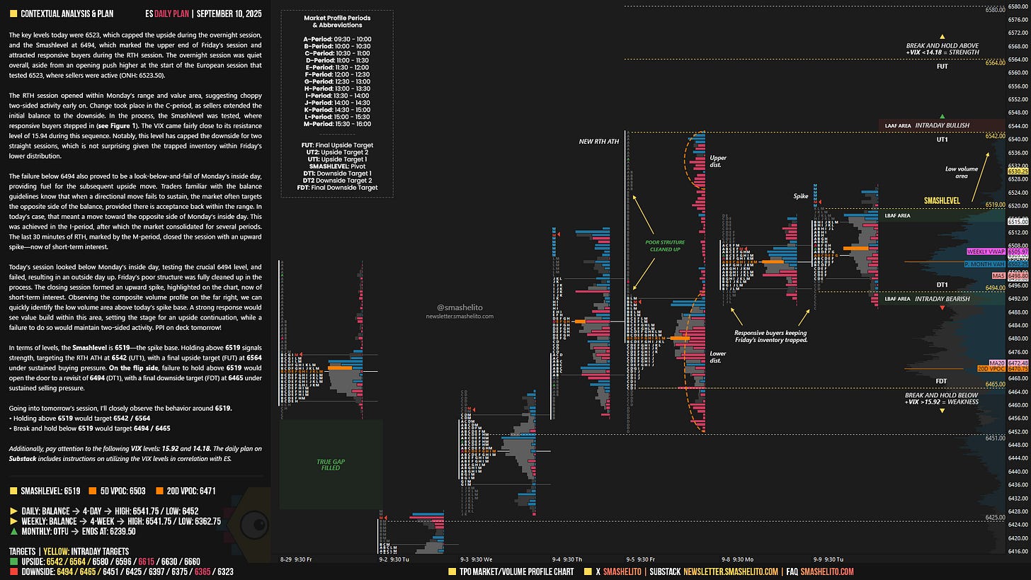 Be sure to review the ES Weekly Plan | September 8-12, 2025 for a broader perspective, key levels, and market expectations for the week ahead.