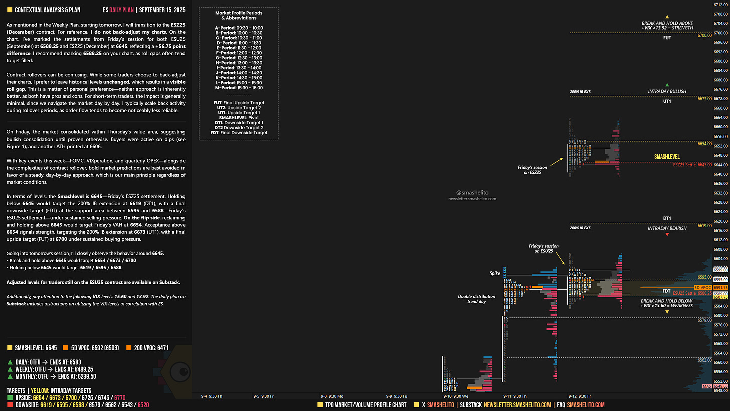 Be sure to review the ES Weekly Plan | September 15-19, 2025 for a broader perspective, key levels, and market expectations for the week ahead.