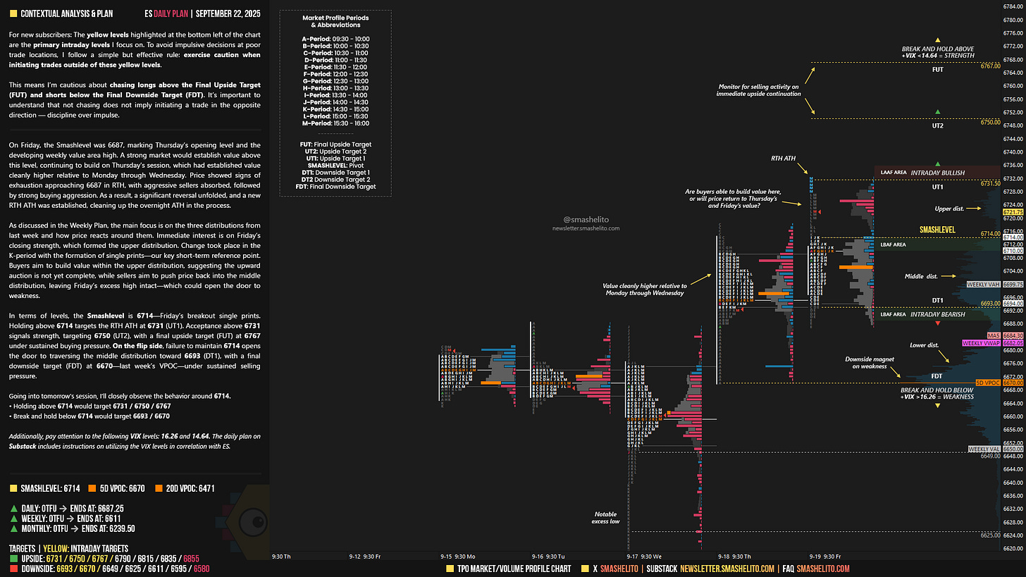 Be sure to review the ES Weekly Plan | September 22-26, 2025 for a broader perspective, key levels, and market expectations for the week ahead.