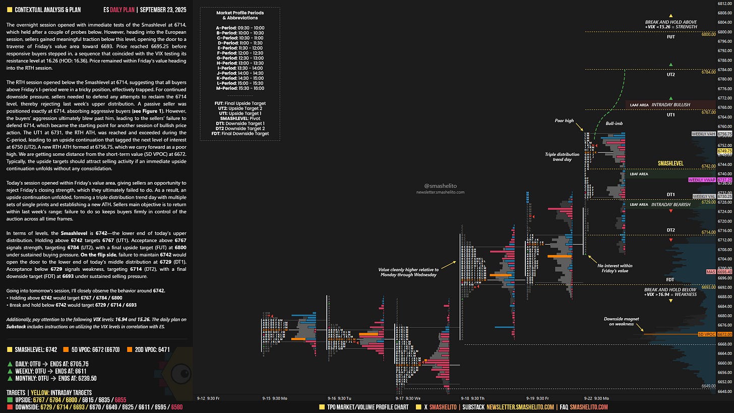 Be sure to review the ES Weekly Plan | September 22-26, 2025 for a broader perspective, key levels, and market expectations for the week ahead.