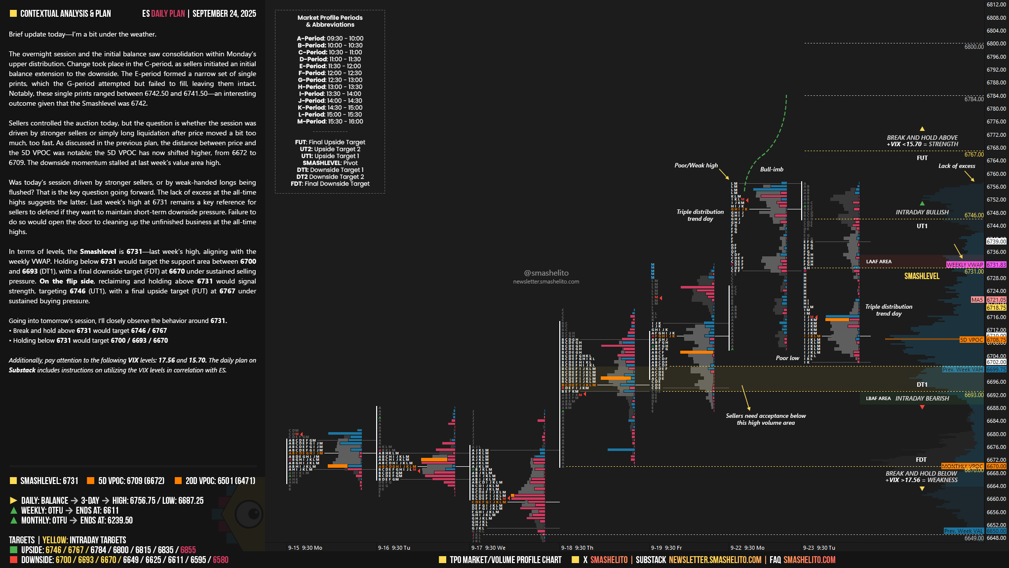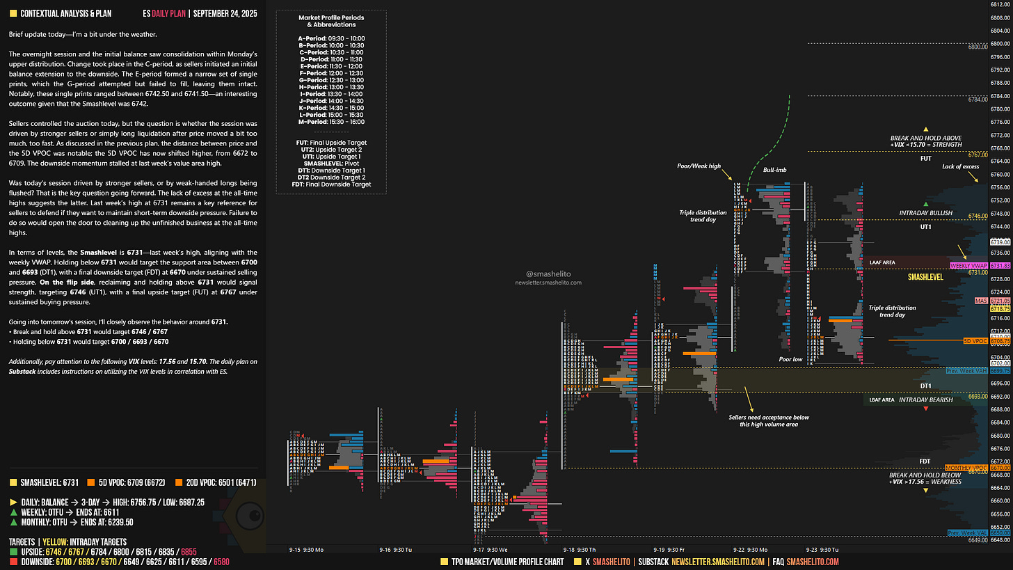 Be sure to review the ES Weekly Plan | September 22-26, 2025 for a broader perspective, key levels, and market expectations for the week ahead.