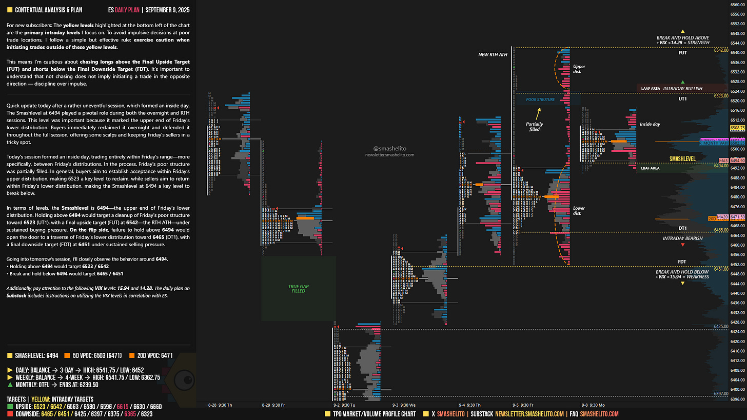 Be sure to review the ES Weekly Plan | September 8-12, 2025 for a broader perspective, key levels, and market expectations for the week ahead.