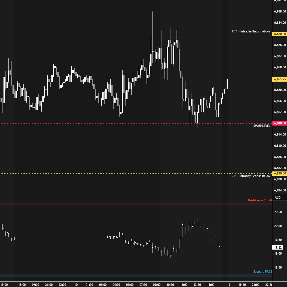 Holding below 6880 would target 6815-6790 / 6690 / 6660* / 6635 / 6575