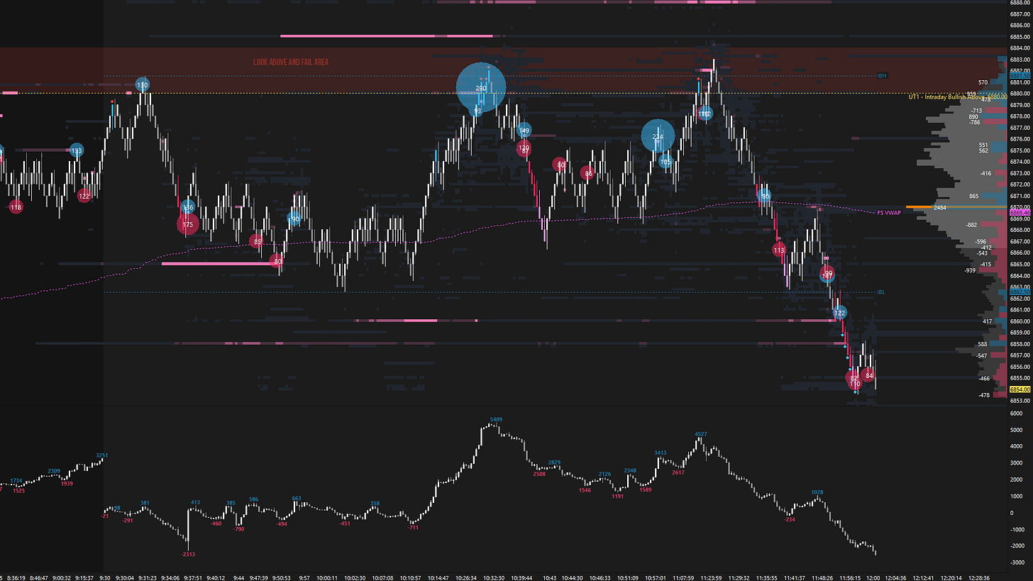 Friday’s session consolidated within Thursday’s upper distribution, offering strong opportunities around our key levels at 6880 (UT1) and 6848 (Smashlevel) (see Figure 7), especially 6880, where aggressive buyers got trapped (see Figure 8). The 6880 level is the YTD VPOC, which we have now returned to after trading 500+ handles lower the prior week, quite a move.