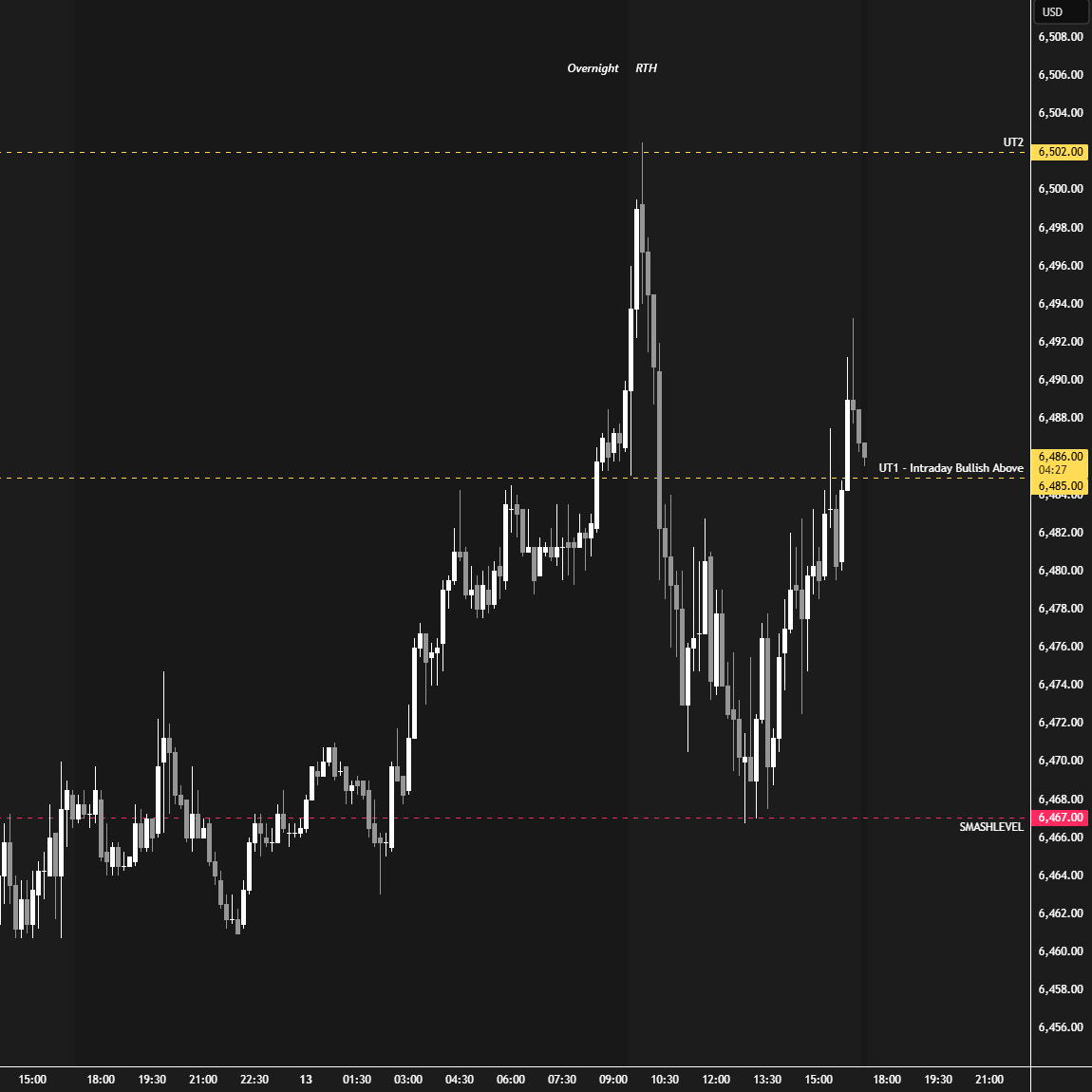 The most bullish scenario would involve holding within the 3-day balance, showing no interest in retesting the prior weekly balance area. This would suggest continued acceptance of higher prices post-breakout, favoring further upside pressure. Another all-time high was set overnight at 6508.75—a reference to carry forward.